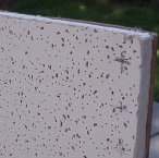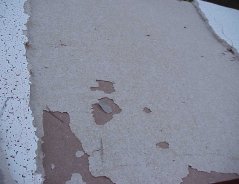 The final test was to see the what was necessary of peeling the tile from the masonite. This was fairly easy once the tile was broken. The masonite could be bent near a break and the tile peeled off. The glue held well to the masonite (even though it was applied to the ceiling tile during construction). But since ceiling tile is just pressed paper fibers the glued surface could be separated from the main body.