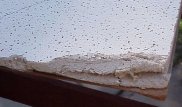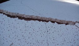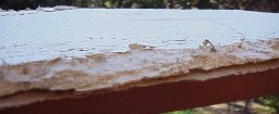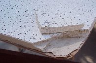 Next I needed to know if the boards would break as easily as the plastic backed one did. This was easily found while handling as they clearly are more robust. Just how robust was the next test. I held the board (masonite down) over a deck railing and pressed on the overhand. The ceiling tile cracked at about 1' from the held edge. This created a large fissure as I continued to press. The next test I reversed the board and held it masonite side up. This was far stronger and I had to severely shake