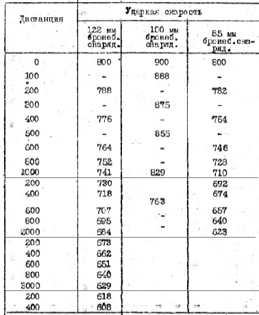 Miles Krogfus has pointed out that the 1931-38 era firing tables for the 122mm Corps cannon 1931(A-19) was incorrect. Below on the left is a 1944 firing table that shows the errors. This was not revised correctly until the late 1950s. On the right is a corrected Firing Table of the 1960-70s The 100mm BS-3 BR-412 round strike velocities are also incorrect. This captured and translated firing table of the similar 100mm D-10 is correct Korean War version. The strike velocities are within +/- 2 m/s of the Sept. 1962 DDR firing table of the D-10 gun. The difference was the MV of the BS-3 was 900m/s while the MV of the D-10 was 895 m/s. (Jane's puts the MV of both guns with BR-412 as 895m/s) (The Russian Wiki puts the MV of both guns as 897 m/s.)