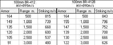 The NAAB penetration at 500m is 164 mm. Note - The document states the MV is estimated. The protection values are not. CIA captured Soviet 100mm BR-412D Firing Table