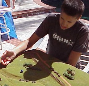 1. First measure the range to the target vehicle. Measure from the turret (or roof edge) of the shooting vehicle to turret edge of the enemy vehicle. Measure the distance in millimeters. 2. Check the gun table for this particular gun. The range listed is the 'up to' number. So if the range measured is say 430mm then the column to use on gun range must be equal or greater than this. The number listed is the base to-hit number. This number plus any adjustments is what must be rolled on a D10, One D10 is rolled per gun shooting at a target per segment. Example: If the target is at 430mm away and the gun firing is a 75mm/70 gun the range column to use would be the 550 So for targets up to 550mm the base to-hit number to be rolled is a 3.